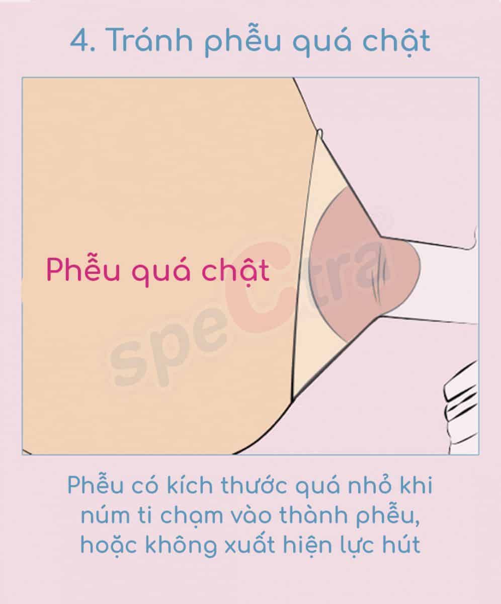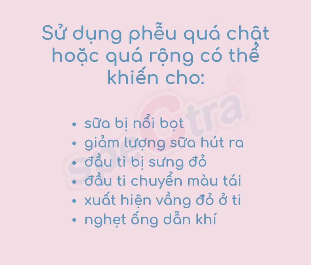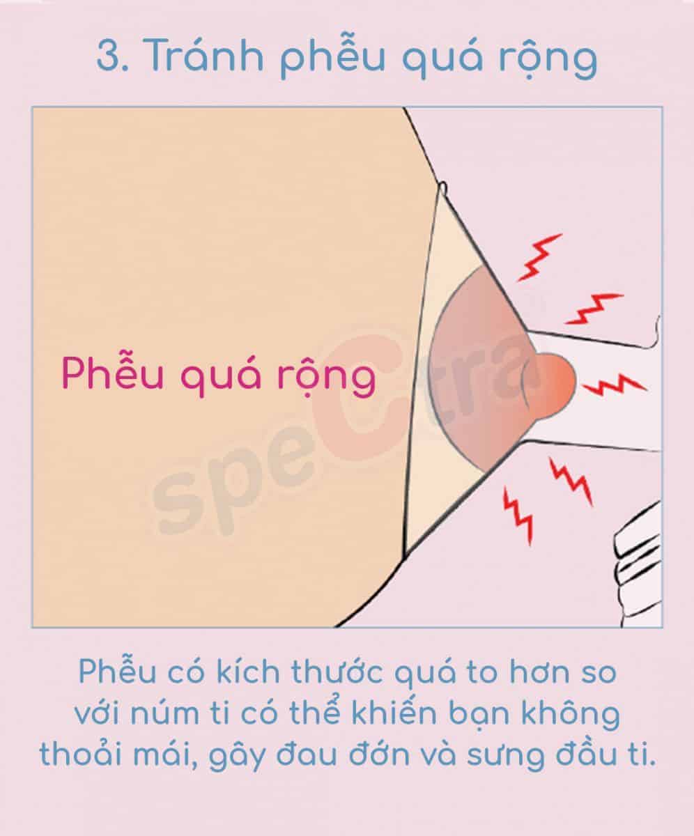 Phễu có kích thước quá to hơn so với núm ti sẽ mang đến cảm giác không thoải mái cho mẹ sữa, còn có thể gây đau đớn trong và sau khi hút sữa và làm sưng đầu ti.