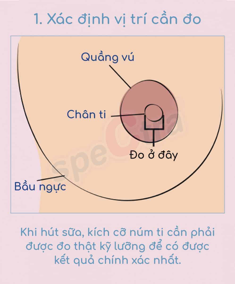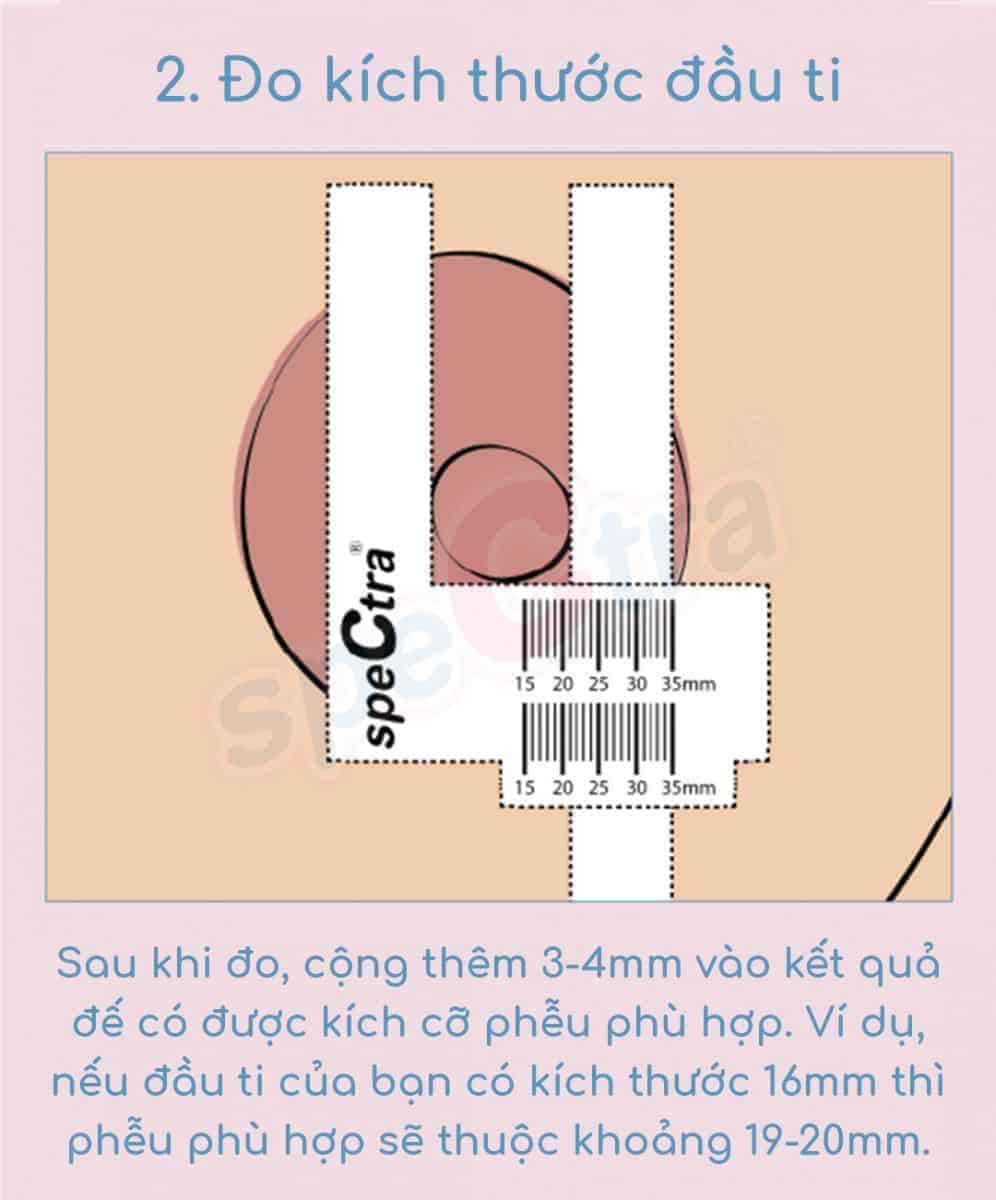 Sau khi đo chân ti, mẹ cộng thêm 3-4mm vào kết quả để có được kích cỡ phễu phù hợp với mình.
