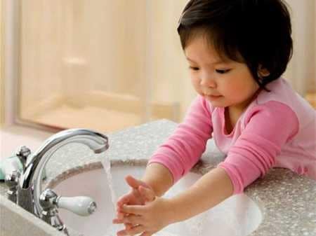 Ngoài ra, cha mẹ cũng thông qua các trò chơi để hướng dẫn con vệ sinh cá nhân như: trò chơi nấu ăn và sau đó ăn cơm. Trước khi ăn, các bạn cùng chơi cần rửa tay sạch sẽ bằng xà phòng.