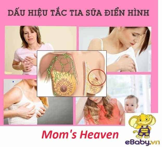 - Khi cho con bú sữa không ra, bầu sữa căng và tức gây sốt, đầu ti con bú đau, bóp ra giọt không bắn thành tia thì rất có thể mẹ đã bắt đầu bị tắc tia sữa. Giai đoạn này các mẹ cần chữa trị ngay vì còn đơn giản, chữa nhanh.